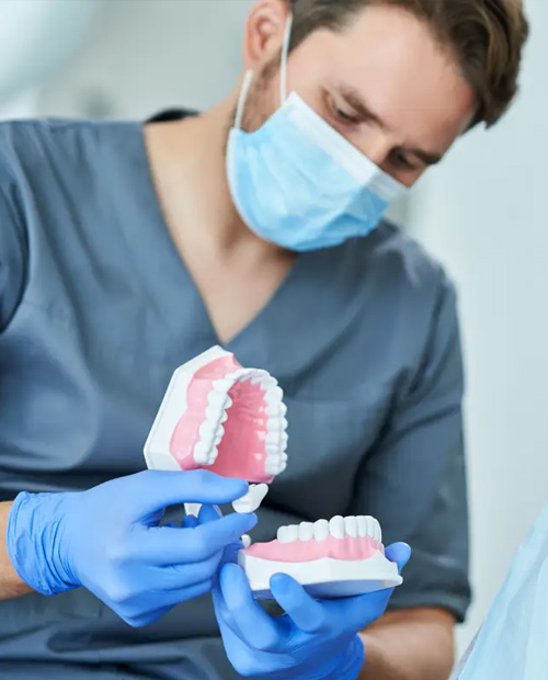 Rinse the mouth with warm water. If you can, save any broken pieces and bring them with you. Apply a cold compress to help with swelling.